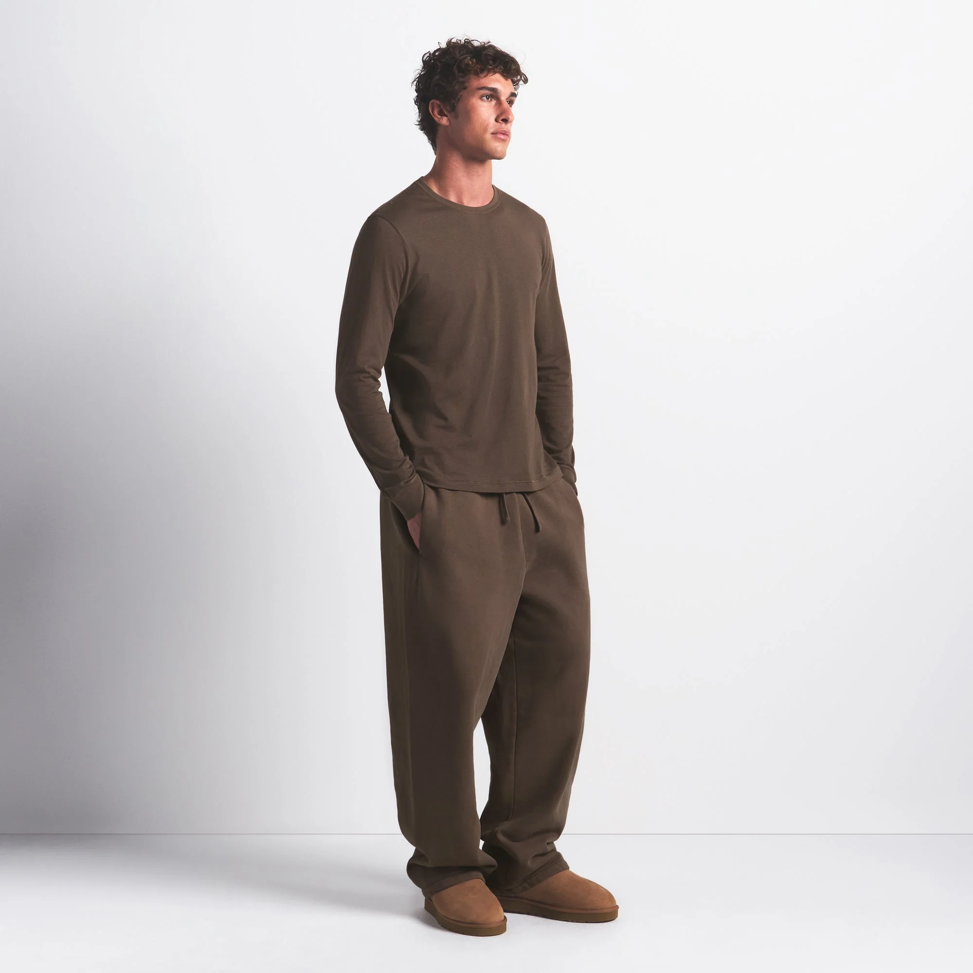 SKIMS COTTON MENS CLASSIC LONG SLEEVE T-SHIRT | DRIFTWOOD